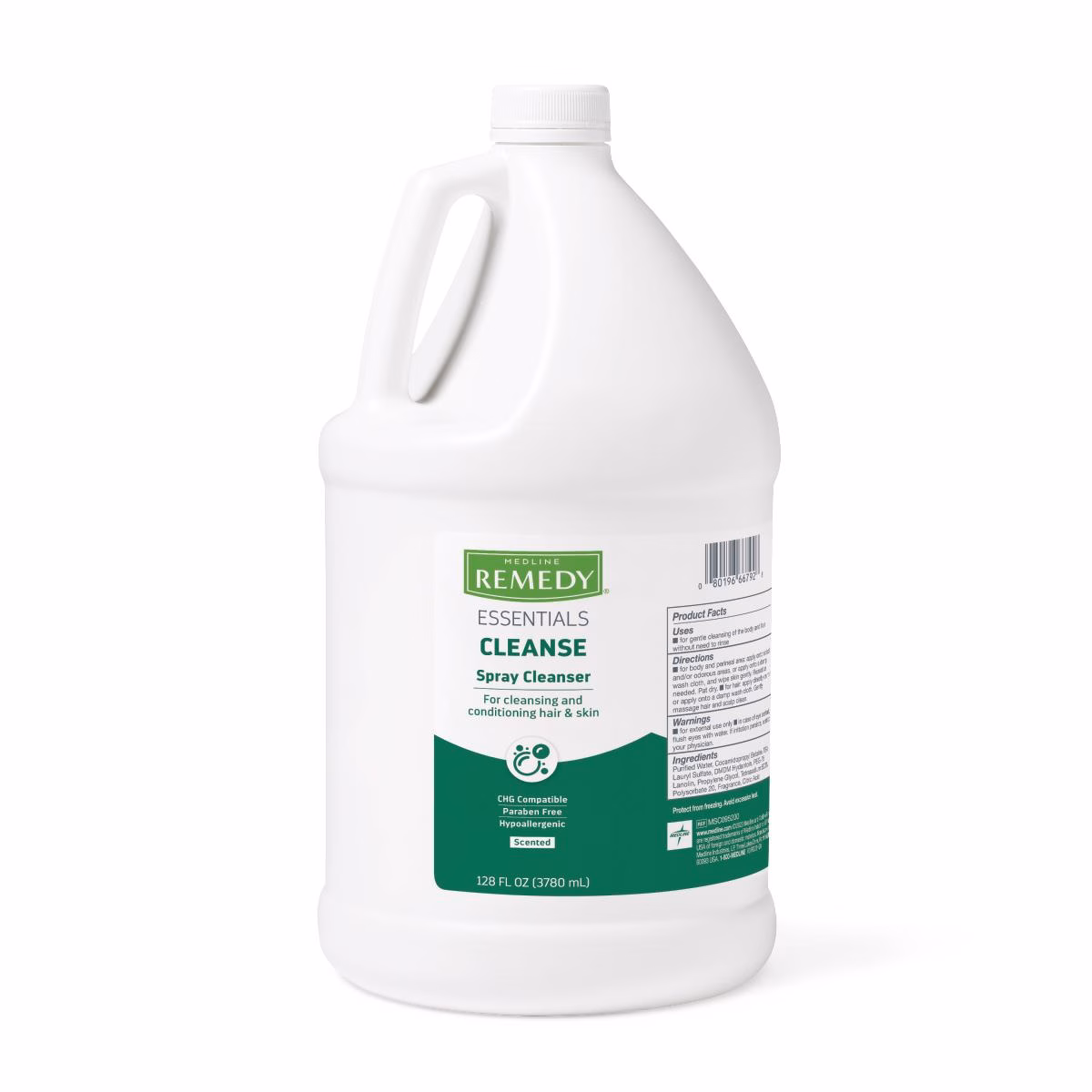 Medline Remedy Essentials Cleanse can be used for cleansing the entire body, as a spot cleaner, or a perineal cleanser. This product can also be used for cleaning and conditioning hair. The formula is hypoallergenic and CHG compatible, as well as paraben-free and sulfate-free. Medline Remedy Essentials Cleanse can also be used as a no-rinse product.