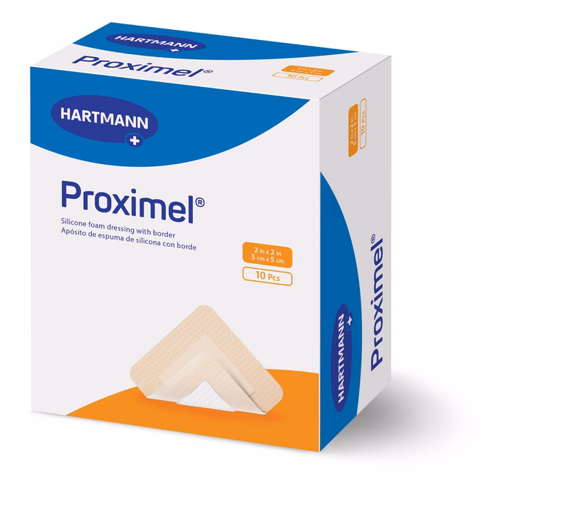 Proximel® Foam Dressing is a five-layer silicone foam dressing to ensure gentleness on skin to avoid irritation and promote wound healing. Can be lifted without disrupting epidermal cells or risk of compromising adhesiveness and leakage. Reduces in-growth by small perforations within the absorptive pad. Foam layer prevents maceration of the skin by evenly distributing fluid. Waterproof material that supports high moisture vapor transmission rate (MVTR) and works as a barrier against bacteria. Product is single use only.